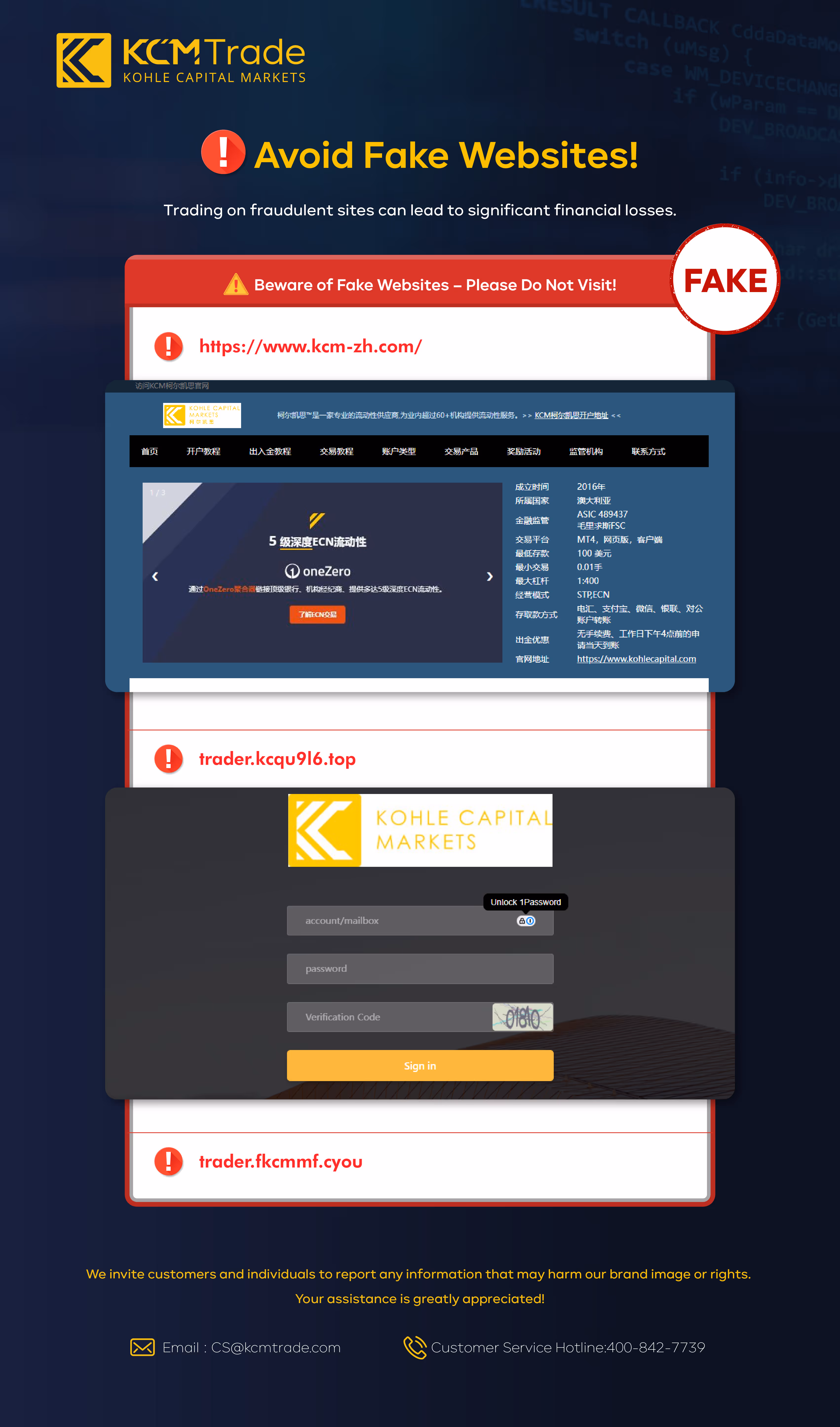 Chúng tôi đặc biệt muốn nhắc nhở bạn rằng trang web dưới đây là sự mạo danh của KCM Trade . Nếu bạn có bất kỳ câu hỏi nào về trang web này hoặc cần xác nhận thêm, vui lòng liên hệ với chúng tôi qua email cs@kcmtrade.com để xác minh tính xác thực của trang web.