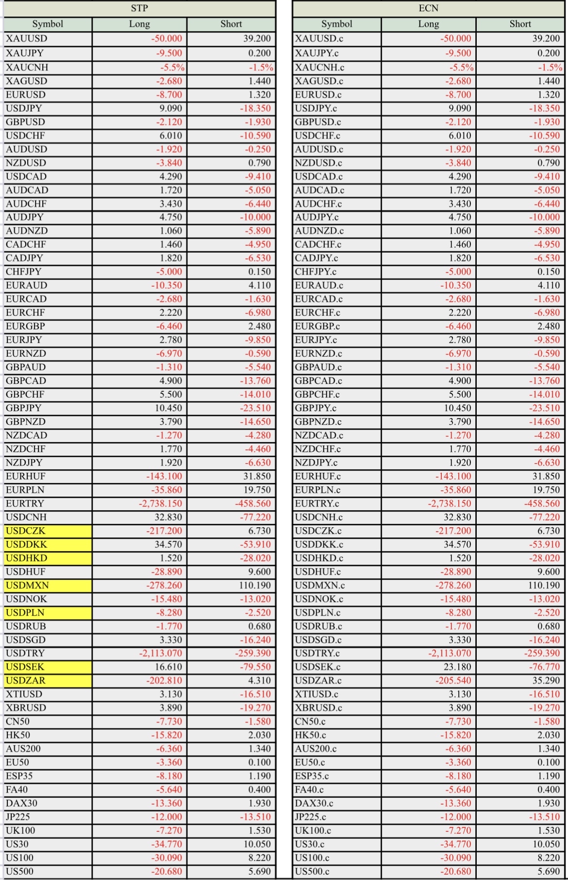Chúng tôi xin gửi đến Quý khách bảng thông tin chi tiết về phí hoán đổi qua đêm cho các điều chỉnh FOREX và KIM LOẠI.